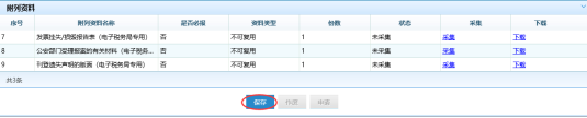 六、上传‘附列资料’,‘是否必报’中‘是’为必须上传的资料。点击‘上传’,根据提示操作上传,也可以下载上传过的附列资料。点击‘添加文件’,选择需要上传的资料,点击【提交】,给出提示确定是否提交,选择‘确定’,给出提示‘采集成功’,完成上传。‘采集成功’后,‘附列资料’信息变为红色字体,采集变为存在,上传变为更新。
