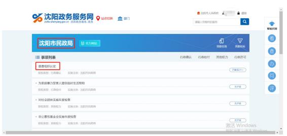 1.1. 访问沈阳市政务服务网点击右上角登录按钮