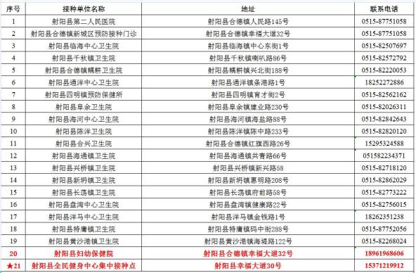 接种地点:江苏省盐城市射阳县幸福大道32号