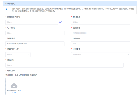 为税务部门的采集事项,当企业完成设立后,该数据会被推送给税务部门,需要注意的是监事不能担任财务负责人。添加财务负责人,如图示所示: