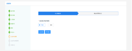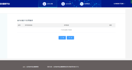 前置许可也是在设立环节的一项,此处填写前置许可经营事项,包含许可机关名称、许可机关。当企业经营范围不涉及前置许可,用户不填写此项,可直接点击“下一步”即可。