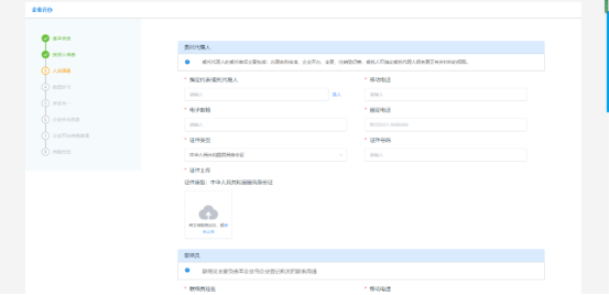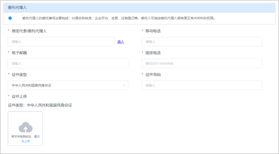 对于企业的经营,离不开下列人员的广泛参与,因此在设立环节,需要采集下列“委托代理人、联络员、财务负责人”的信息,申请人需要依次填写相关内容。新增成员信息,可选择已录入人员,方便用户操作。