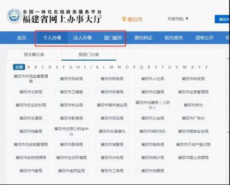 第一步:打开网址福建省网上办事大厅,选择莆田分厅: