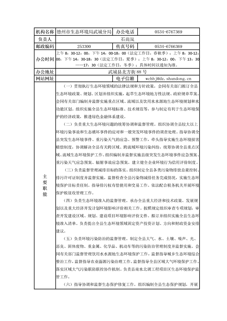 办公时间 上午8:30—12:00;下午14:00—18:00(法定工作日,春秋季),14:30—18:30(法定工作日,夏季);13:30—17:30(法定工作日,冬季);具体时间以通知为准。电子信箱 wczhk@dz.shandong.cn