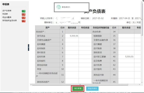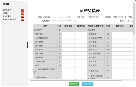 ⑤点击【保存草稿】与【校验并保存】按钮操作与增值税申报一致。