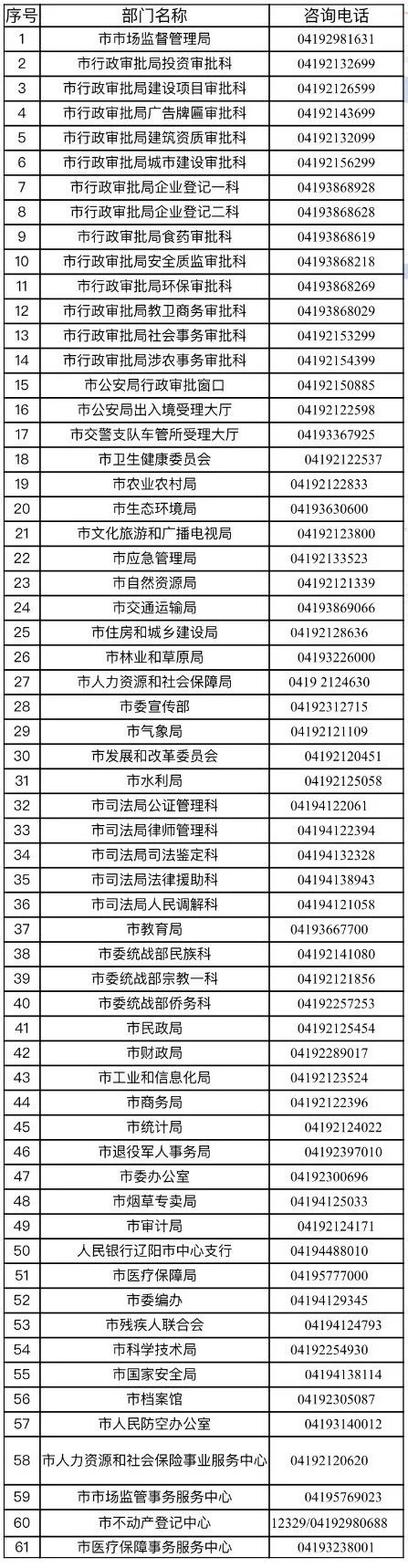 辽阳市政务服务部门业务咨询电话