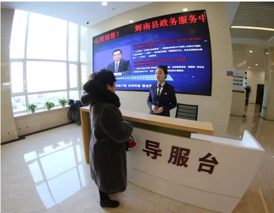 辉南县政务服务中心新址位于辉南县朝阳镇朝阳大街118号,辉南县政务服务中心办公面积5883.74平方米,设有四层办公区,全县共27个部门进驻,办公人员共有207人,设立55个行政审批、服务窗口、 110个前台岗位、39个后台办公室,行政审批及日常管理、服务事项共计242项。