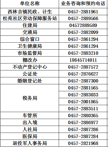 漠河市政务服务中心办事大厅漠河市医保局窗口预约咨询电话:2887284,漠河市人社局服务大厅各窗口联系电话:18845708989