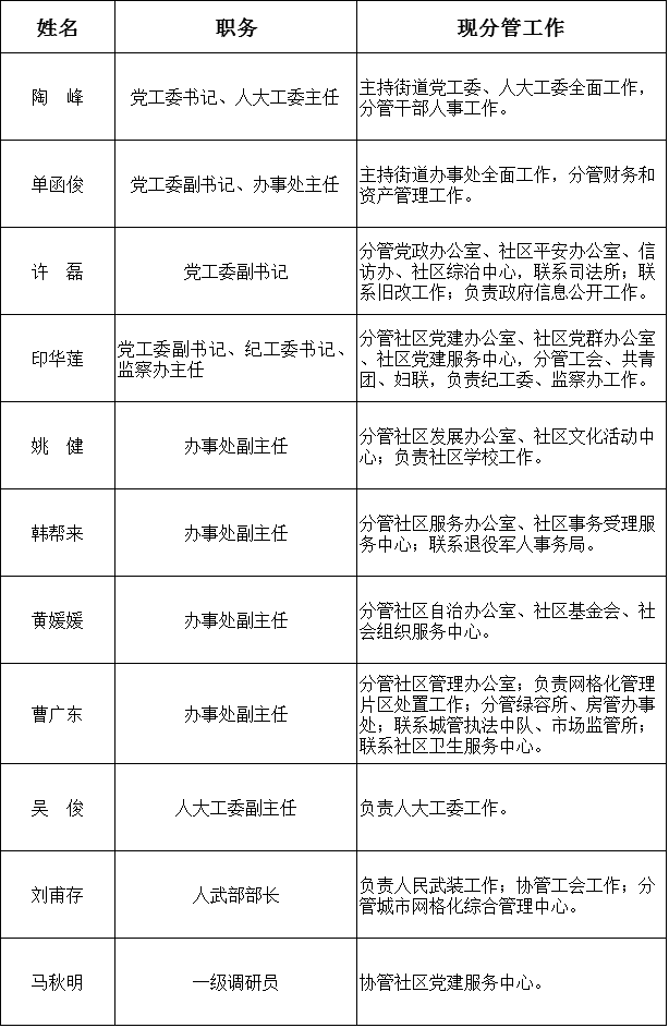 负责干部人事、人才和老干部工作;负责社区党的建设,开展区域化党建、“两新”组织党建和居民区党建工作;负责党代表的联络和服务工作;负责社区工作者事务所的相关工作等。
