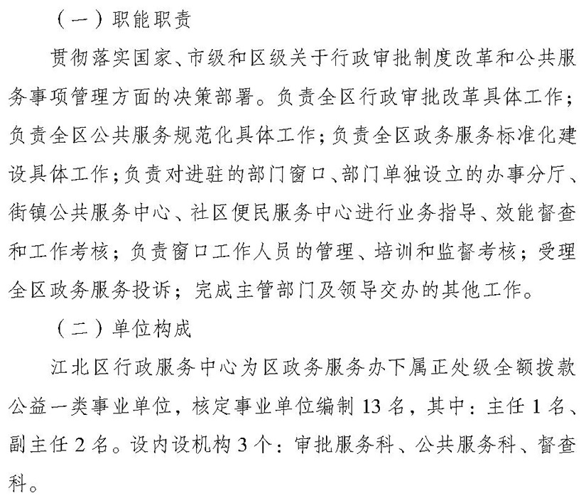 江北区行政服务中心可办理事项涵盖交通领域、卫生健康领域、市场监管领域、工程建设领域等共计1159项。
