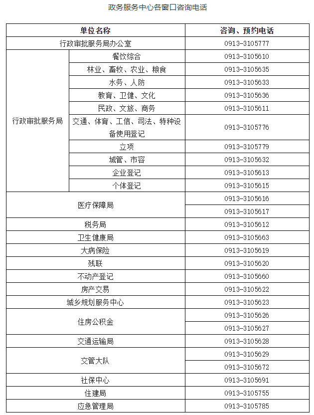 蒲城县行政审批服务局办公室0913-3105777蒲城县政务服务中心0913-3105688蒲城县政务服务中心导办台0913-3105683