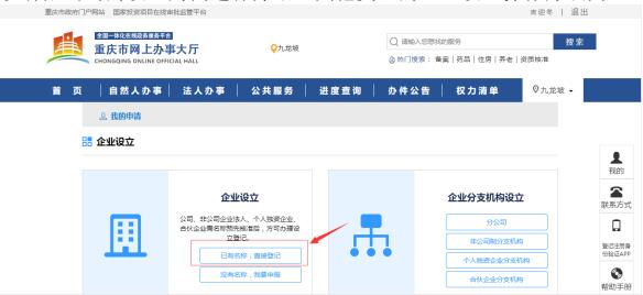 重庆市注册公司设立登记前,需进行名称预先核准(或名称自主选择)后,方可申请办理设立登记;企业分支机构设立无需进行名称预先核准。以有限公司的设立为例进行介绍,其他类型的企业设立操作方法同理。