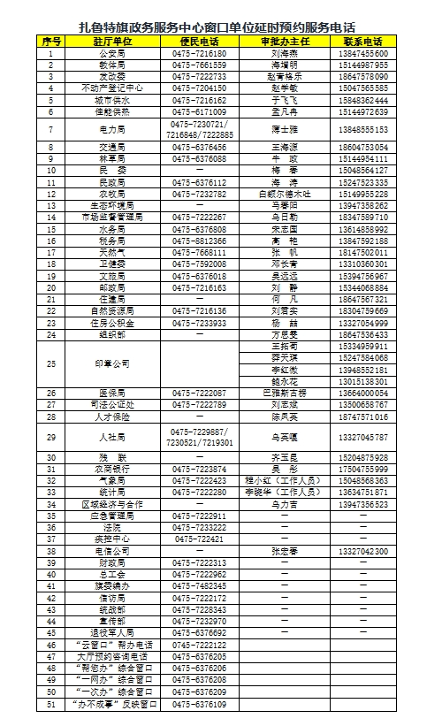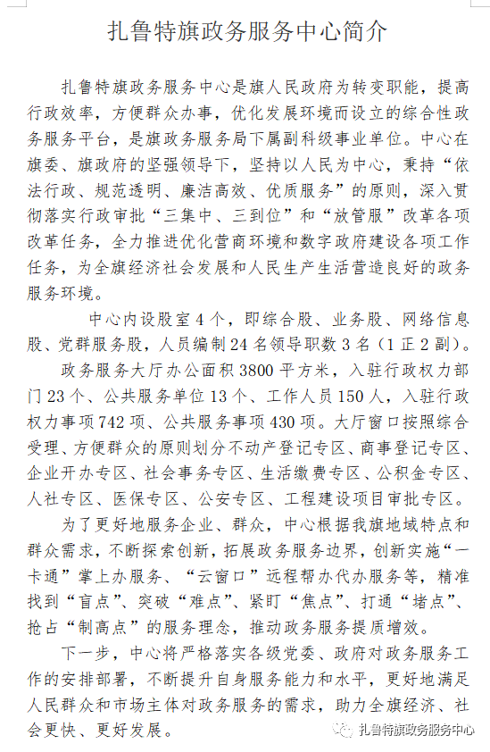 扎鲁特旗政务服务中心主要职责:
