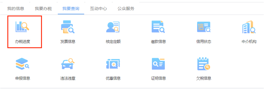 纳税人可通过【我要查询】—【办税进度】查询已提交办税事项受理进度。
