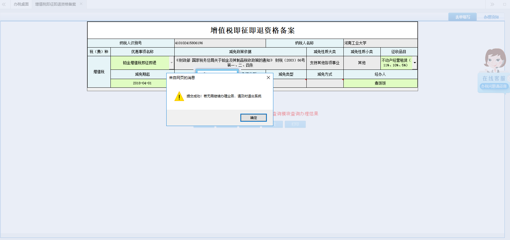 2.如果纳税人进行过放弃免税权备案,且受理日期所属月份小于备案月份次月加36个月的,系统提示该纳税人已放弃免税权,不予受理;