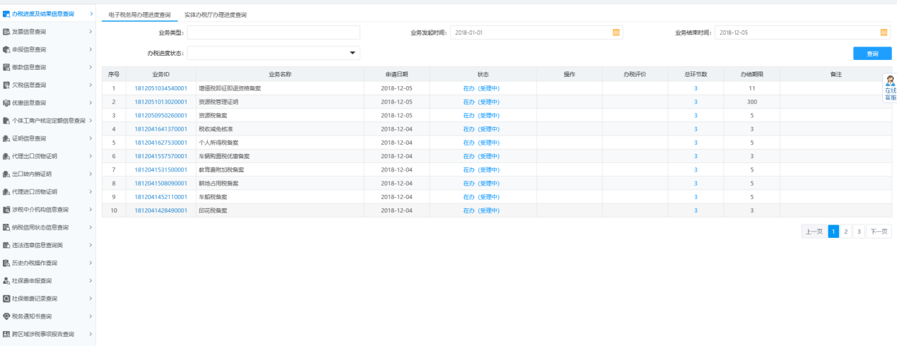 模块路径:首页-【我要查询】-【办税进度及结果信息查询】