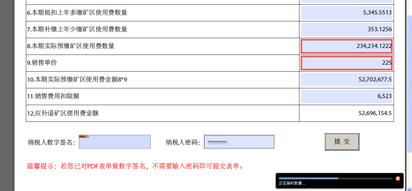 (3)然后再点击提交按钮,出现正在提交数据页面,如下图所示:
