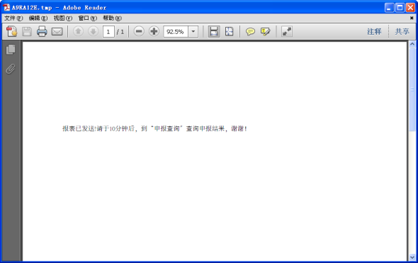 (4)提交成功后会出现以下提示,至此网上申报数据提交工作已完成,然后可到查询页面查询申报处理结果。