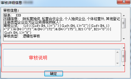 审核详细信息中有文字说明和公式说明,报表中会将涉及到的表元标红或者标黄。点击“审核详细信息”,根据审核详细描述修改错误数据;若确认无误,在“填报说明”中根据实际情况输入说明信息,即可通过该栏次审核。