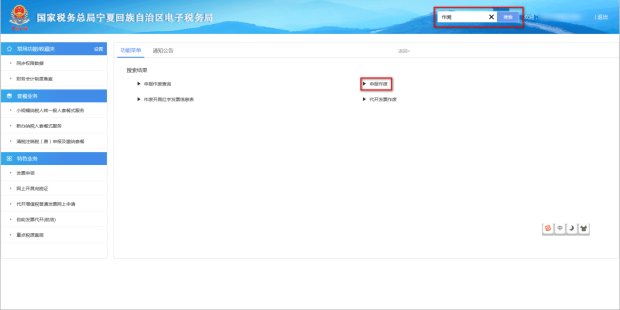 (4)在搜索栏输入关键字,进行模糊查询。同上操作即可申报作废。(用于纳税人作废已提交的申报表)