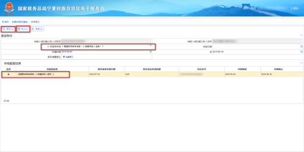 (3)选中需要更正的申报表然后点击【更正】按钮,进入更正界面。