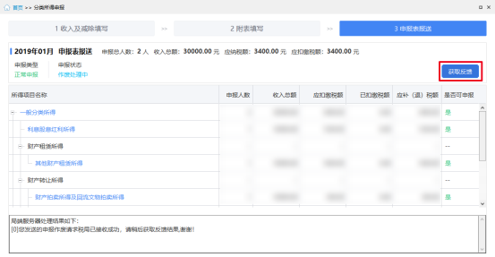 点击【作废申报】,局端接收成功后,申报状态会变更为“作废处理中”,并仅显示【获取反馈】,稍后点击【获取反馈】查看作废结果。作废成功,申报状态会变更为“未申报”,则可对已申报数据重新进行编辑或清空数据后重新填写发送申报;作废失败,申报状态会变更为作废前的状态,即申报成功状态。