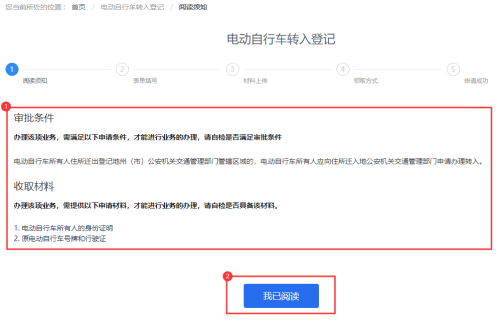 1.阅读须知:了解审批条件及收取材料,点击“我已阅读”