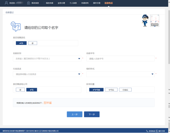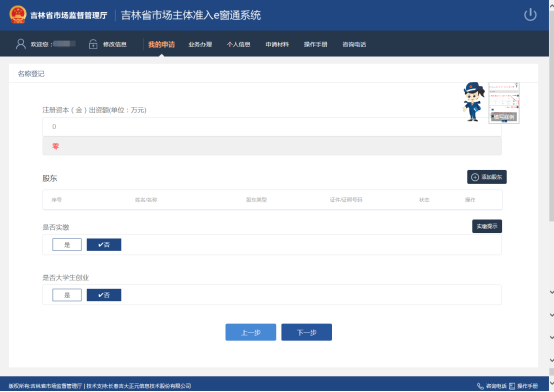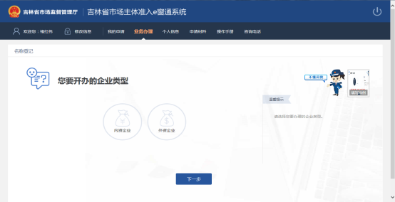 1) 首先进入【吉林省市场主体准入e窗通系统】,如下图: