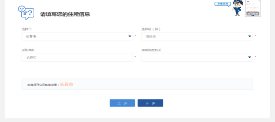 20) 选择领照机关为“长春市市场监督管理局南关分局”,如下图: