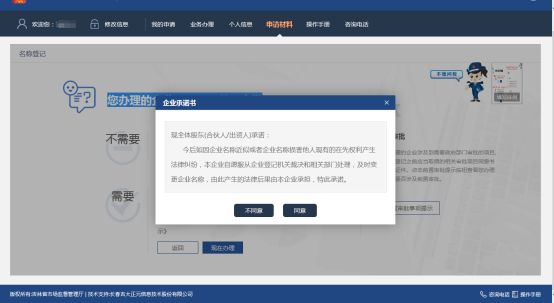 42) 点击“同意”按钮,名称自主申报成功。如下图: