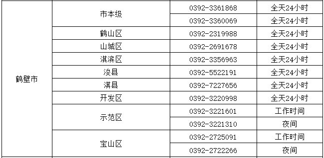 鹤壁全市设立新型冠状病毒感染的肺炎疫情防控工作24小时举报电话:
