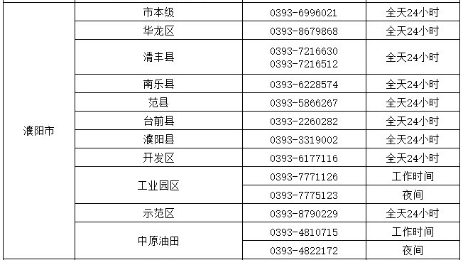 濮阳县:0393-3319002