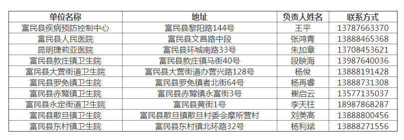 为巩固疫情防控成果,建立人群免疫屏障,确保人民群众生命健康安全,根据上级新冠疫苗接种工作整体部署,昆明市富民县全民免费接种新冠疫苗工作已全面展开;即日起,富民县辖区内18岁以上居民(含60岁以上)身体状况符合接种要求的均需免费接种新冠病毒疫苗,请您与所在单位或社区联系疫苗接种相关事宜。富民县市民预约接种新冠病毒疫苗单位名单、地址、接种时间和预约电话等相关信息看这里↓↓↓