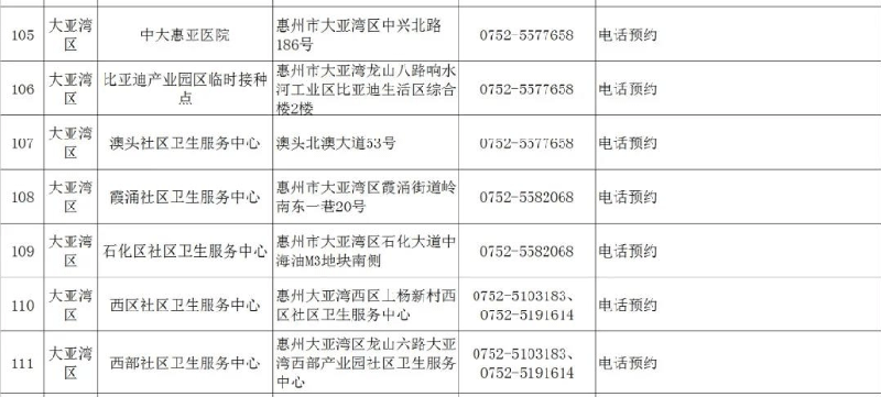 接种地址:惠州市大亚湾区澳头北澳大道53号;