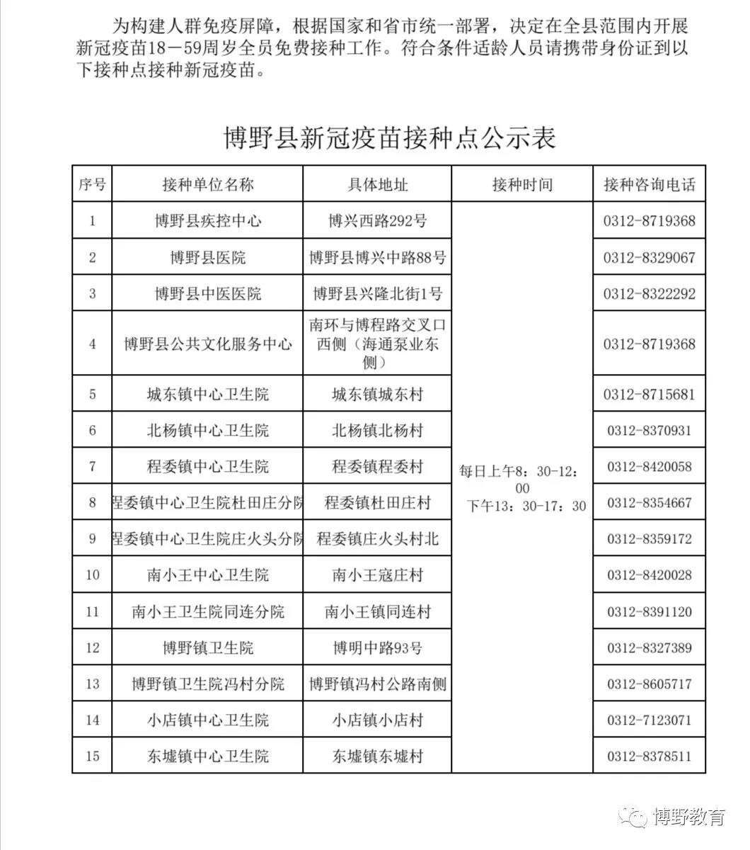 接种地址:河北省保定市博野县程委镇程委村