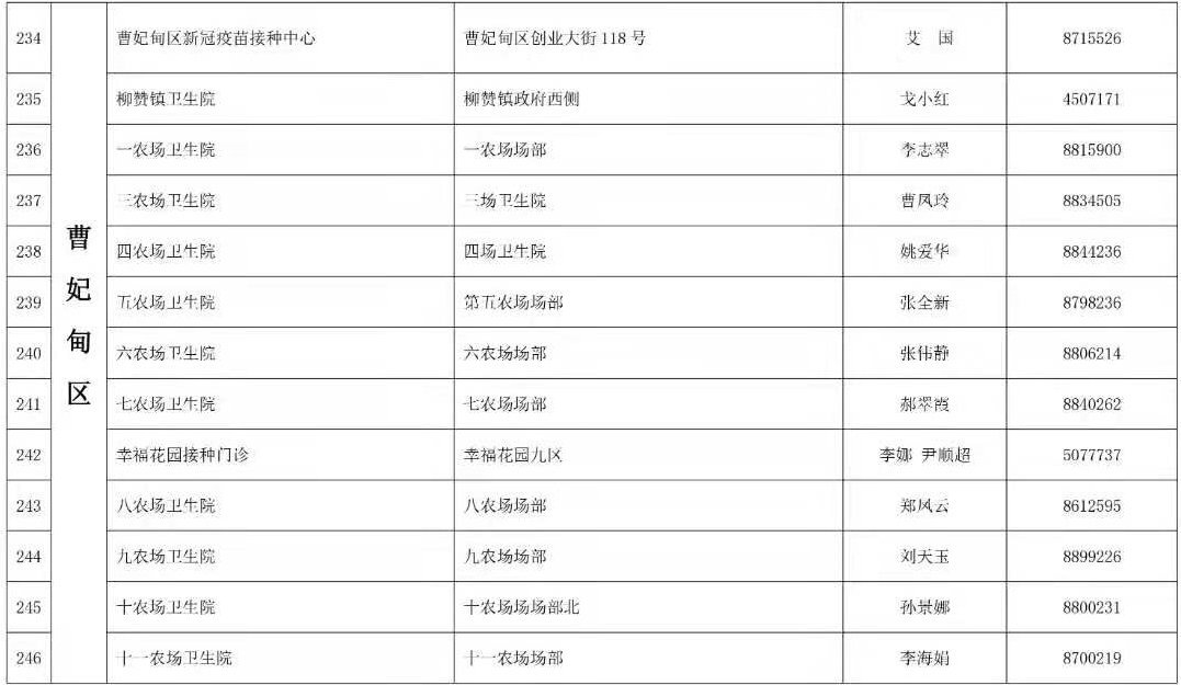 接种地址:唐山市曹妃甸区九农场场部