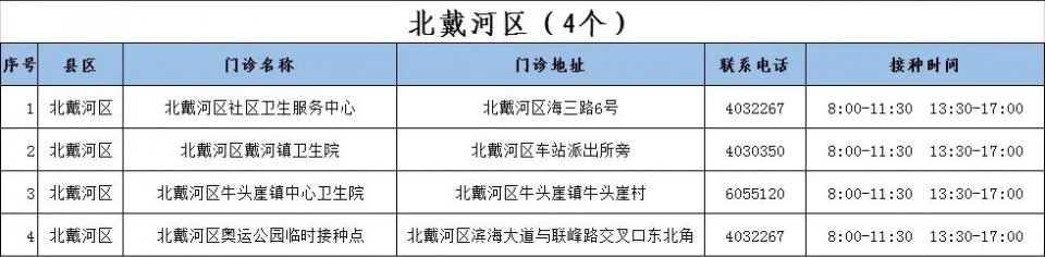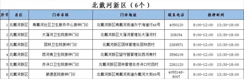 1、秦皇岛市北戴河区社区卫生服务中心疫苗接种门诊