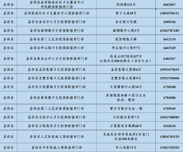 接种地点:济宁市嘉祥县满硐乡中心街3号