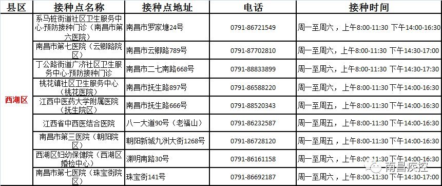 接种地点:江西省南昌市西湖区八一大道90号(老福山)