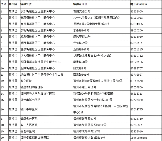 接种地点:福建省福州市鼓楼区观风亭街23号