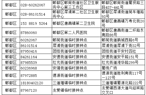 接种地点:四川省成都市郫都区团结街道上河街156号