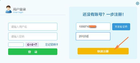在弹出框左侧输入手机号后点击“发送验证码”,该手机将收到【海智云】下发的验证码,将该验证码填写到相应位置,然后点击快速注册,随机收到【海智云】下发的密码,即完成注册。