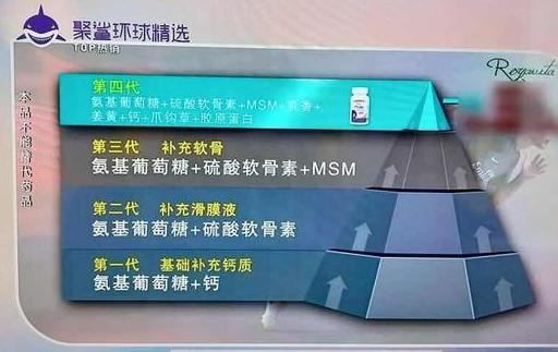 普遍的氨糖产品,一天用量中,含有氨基葡萄糖1500mg,硫酸软骨素200mg,透明质酸3.3mg,MSM1500mg。