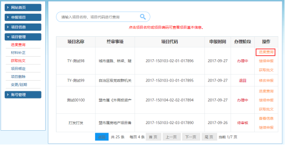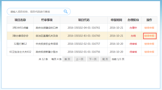 对于建议书、可研、初设这样联办的审批项目可以点击查看审批项目信息,如果建议书已经办结的可以点继续申报,直接申报可研,不需要再重新注册填写信息,同样,可研办结了申报初设。