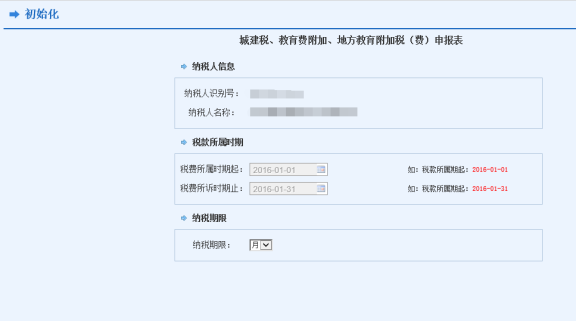 A、依次点击菜单【申报缴税】—【纳税申报】—【附加税】—【申报】进入附加税申报初始化界面。