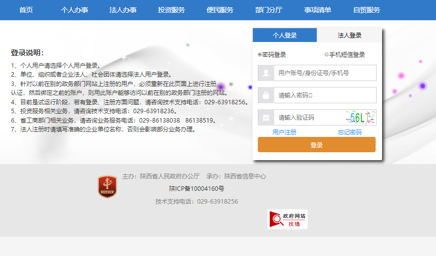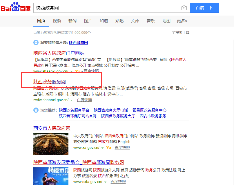 1.进入陕西政务服务网:百度搜索“陕西政务服务网”,注意陕西政务服务的网址为:http://zwfw.shaanxi.gov.cn/(陕西政务服务)