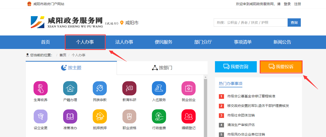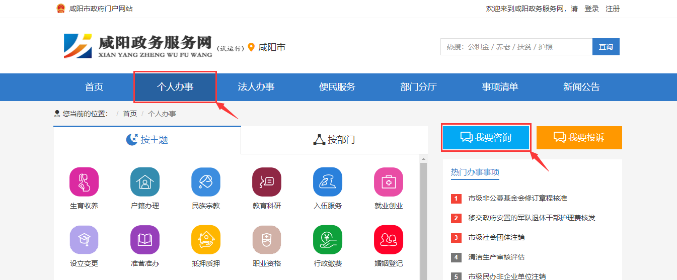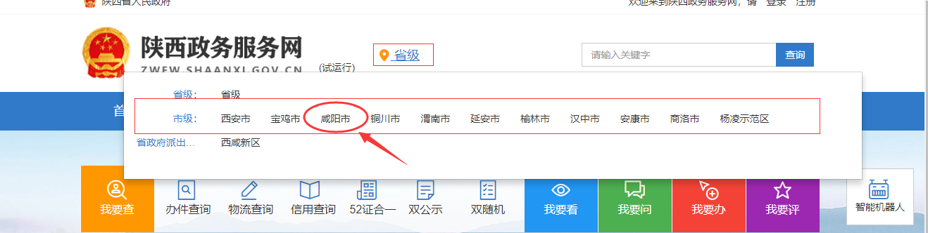 2.咸阳政务服务网首页