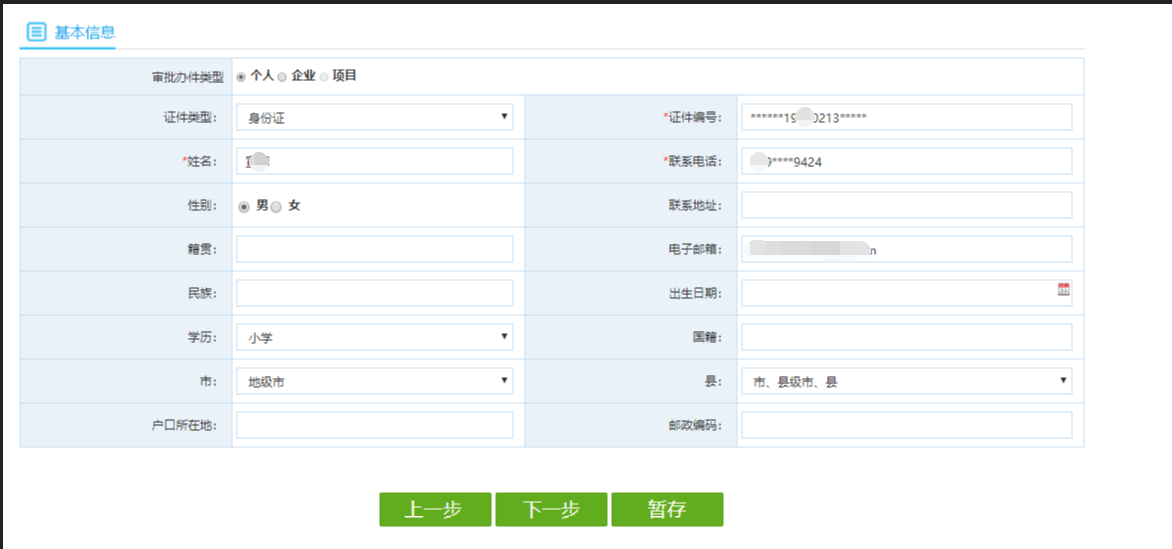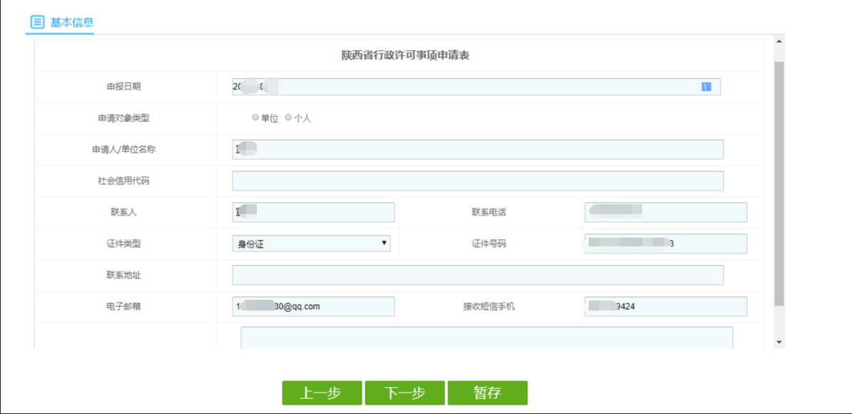 9.申报信息,填写基本信息(注册账号时填写的信息会自动填充),如需修改,可直接进行修改,填写完毕点击下一步。注意:带*为必填项。