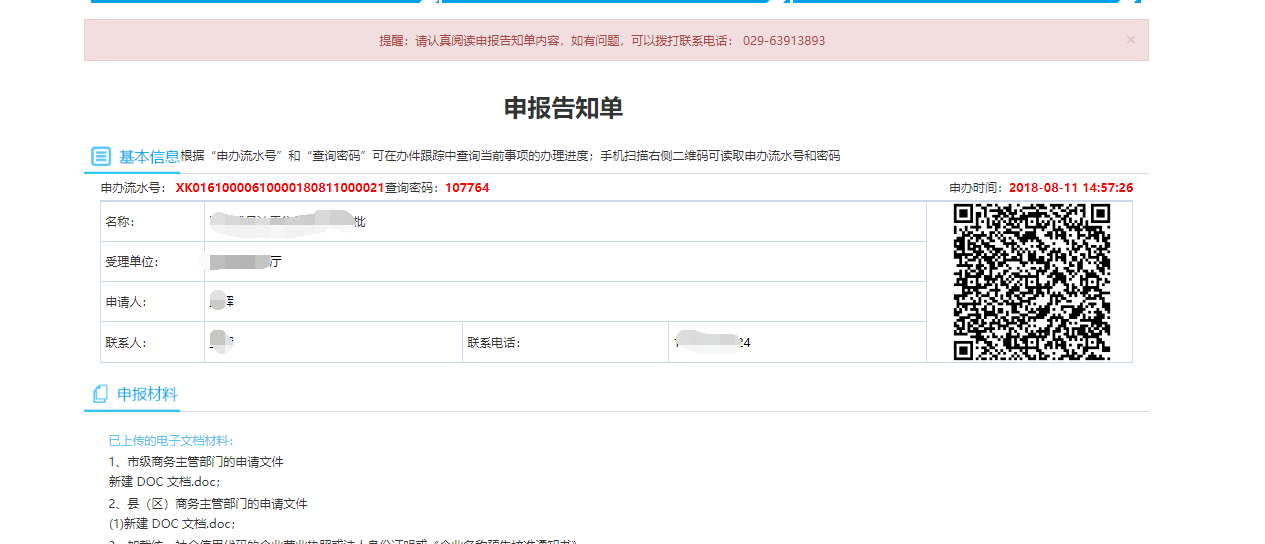 14.申报成功产生申报告知单。