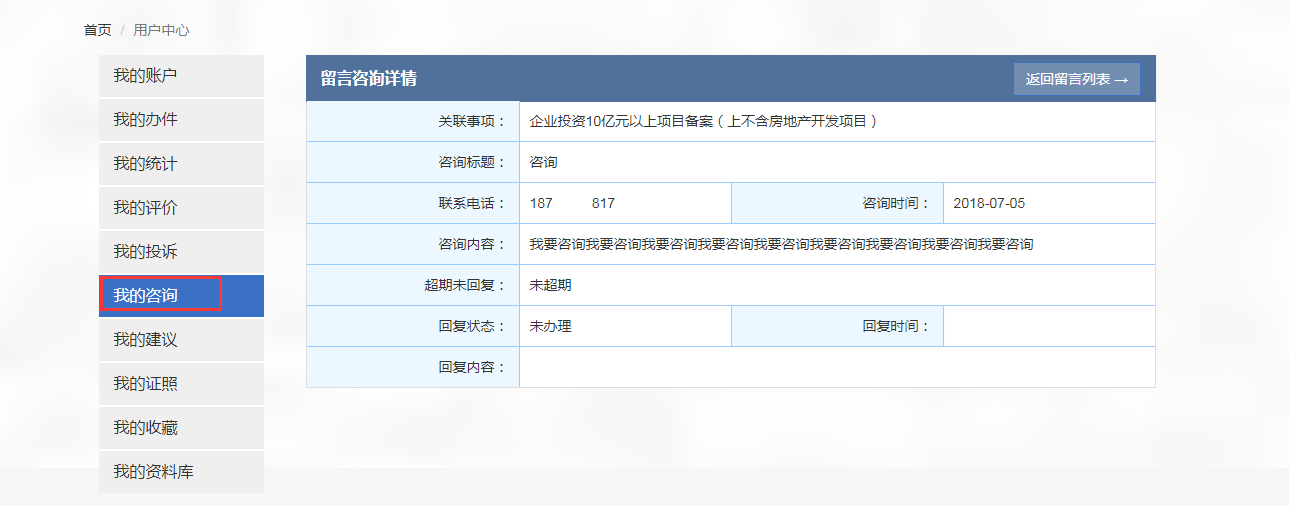20.点击用户中心-我的咨询中可查看咨询问题的回复。